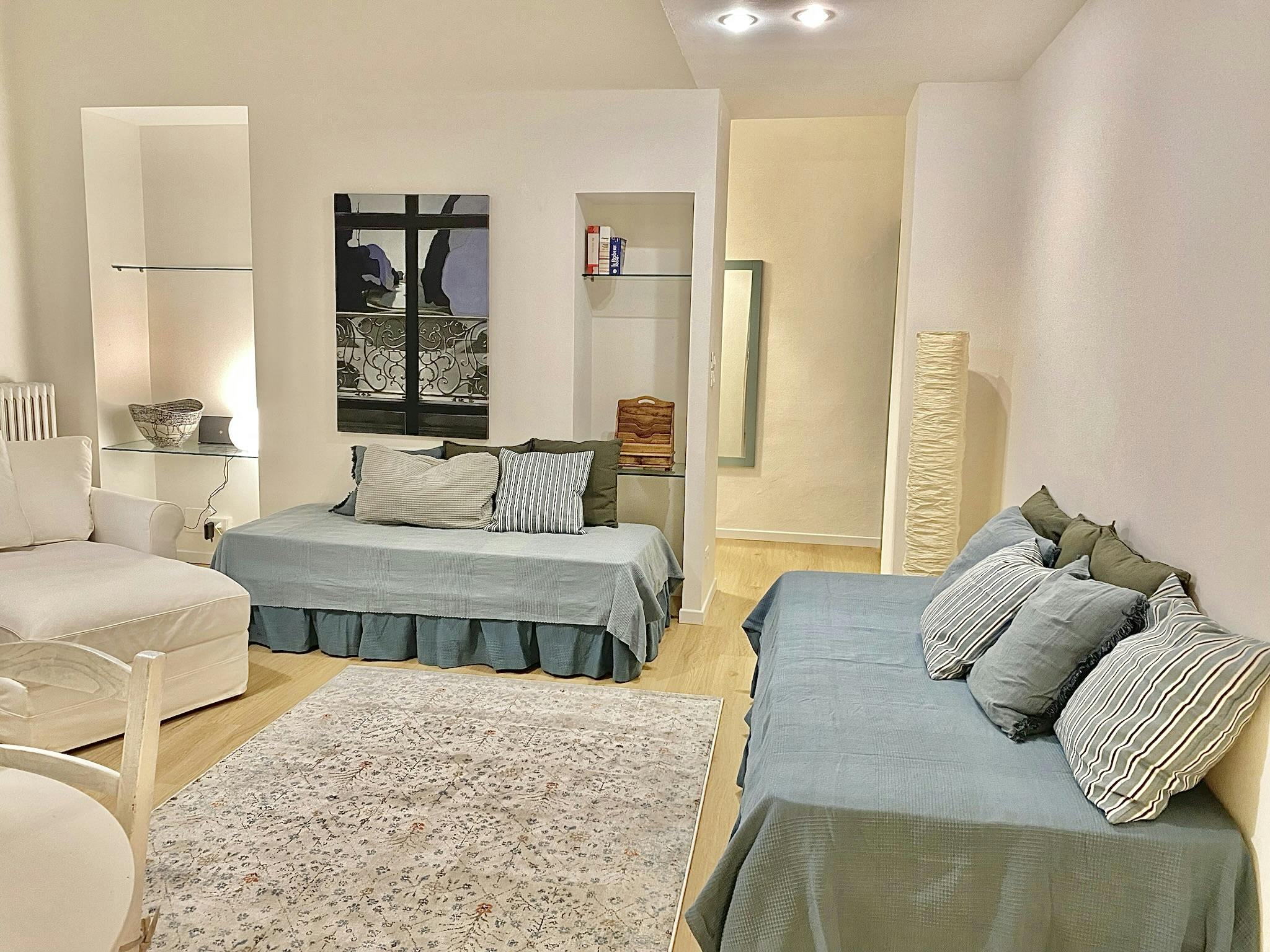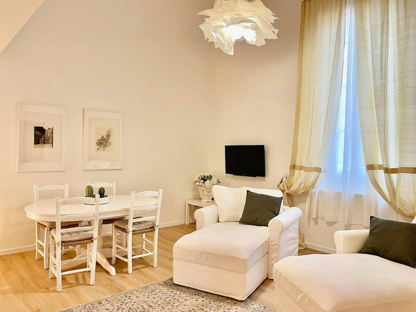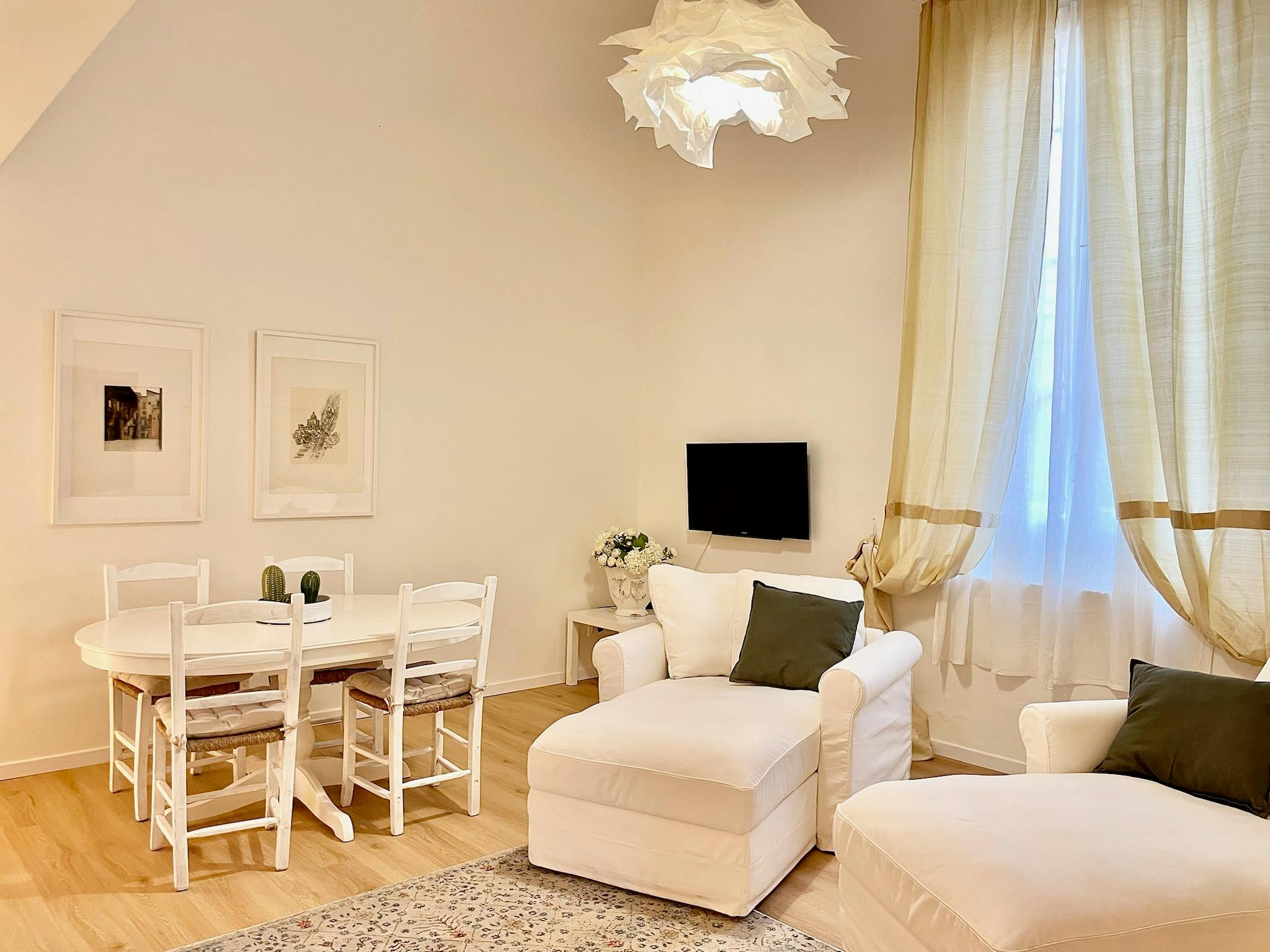 Overlooking the inner garden of a noble building, this tranquil and elegant apartment is located in the heart of the historic center.