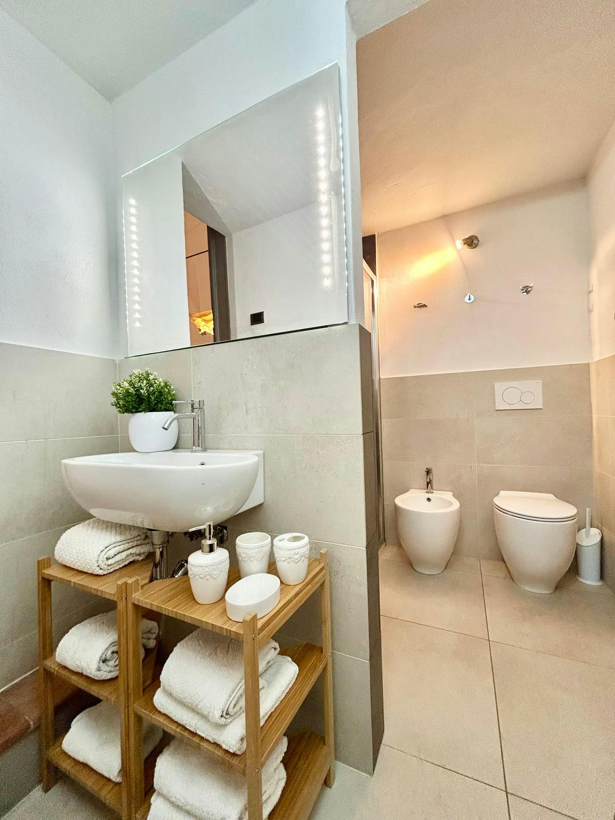 From the entrance, you will also access the spacious and elegant living area, where you will find a comfortable sitting area with a vaulted ceiling and two large, bright windows. Wi-Fi, TV, a large sofa, and two comfortable sofa beds (which can be transformed into two single beds if needed) are available.