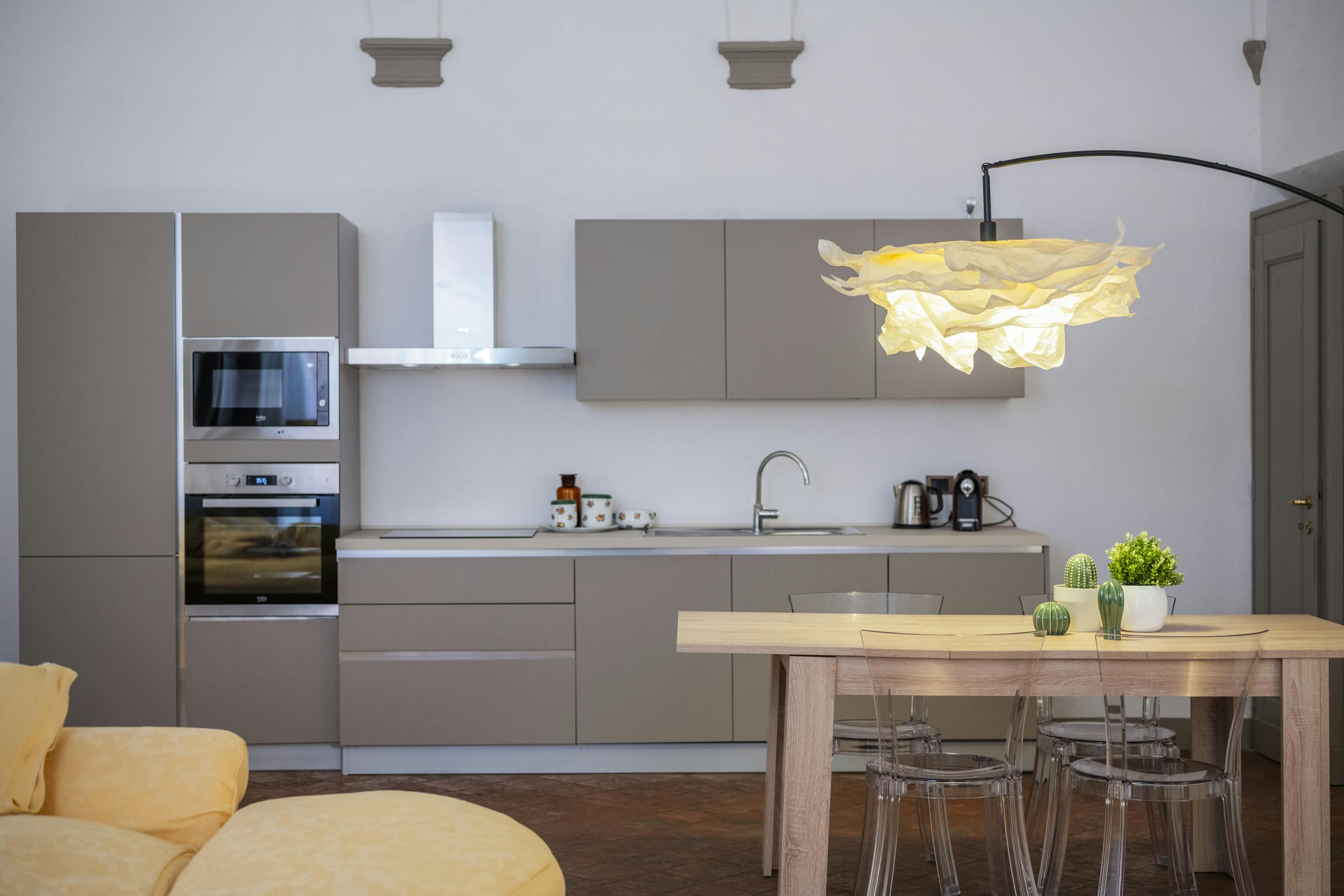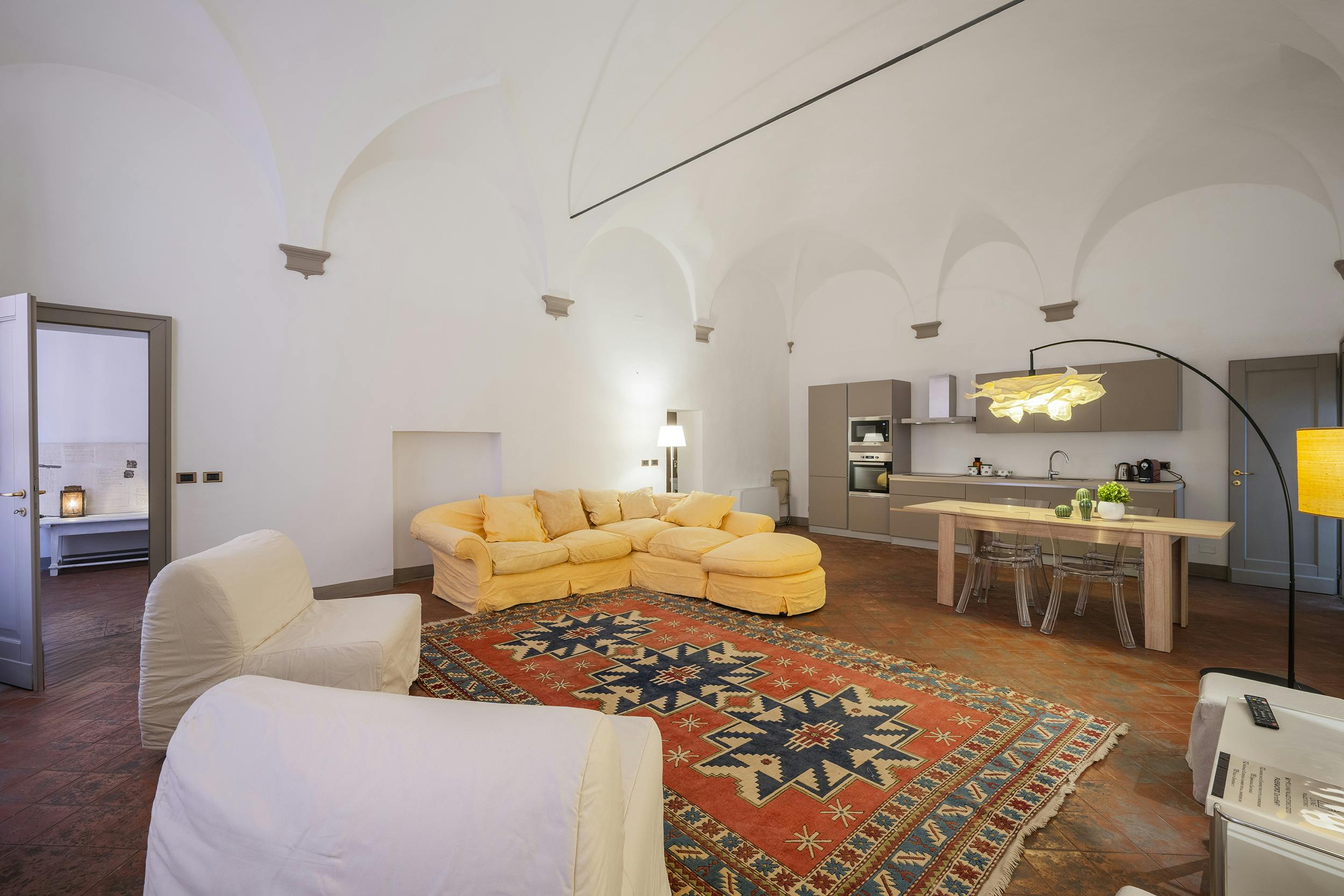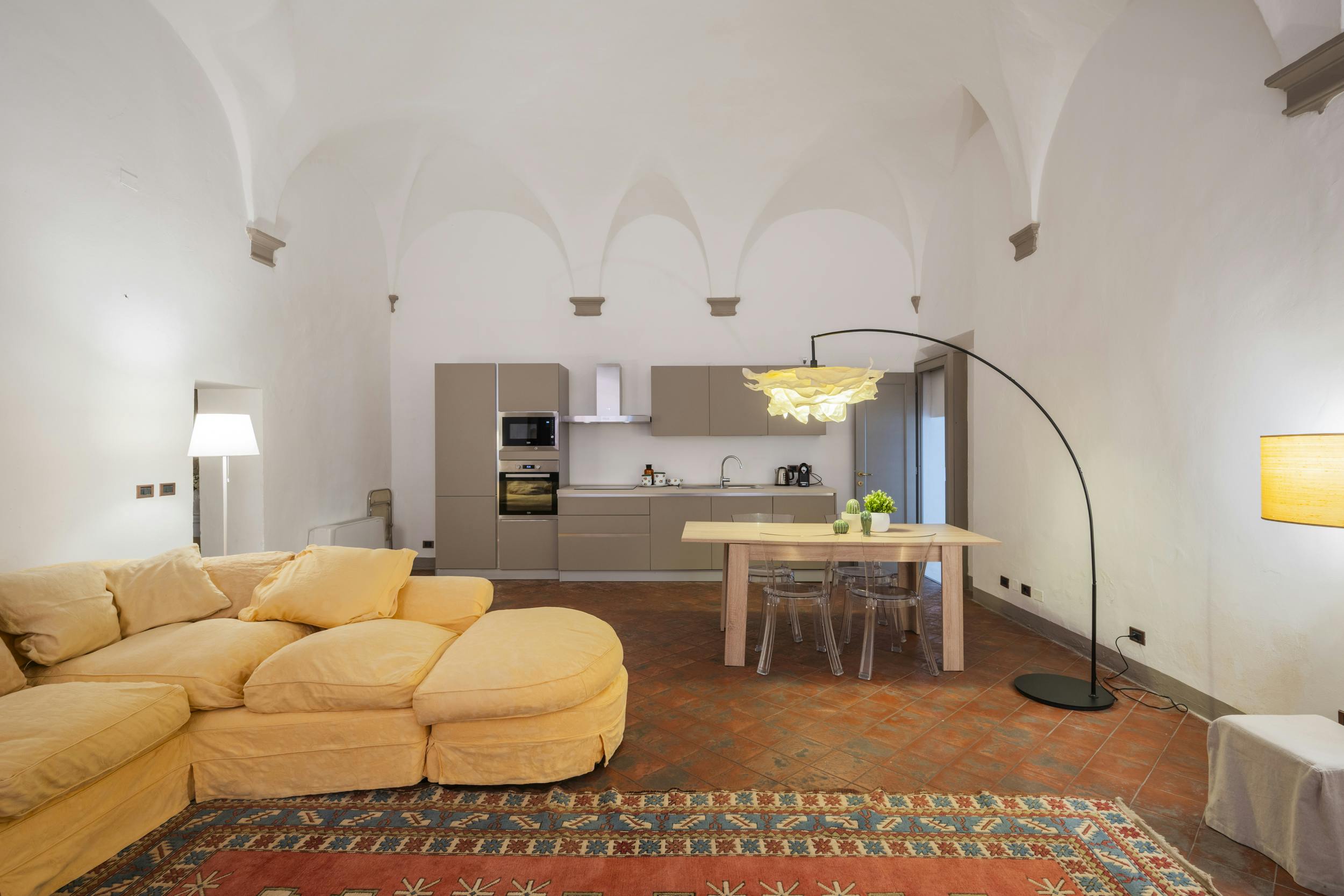 Enjoy the style and tranquility of an elegant space in the heart of the city. In a historic medieval building, this entire ground-floor apartment is spacious and comfortable, featuring a charming vaulted ceiling.