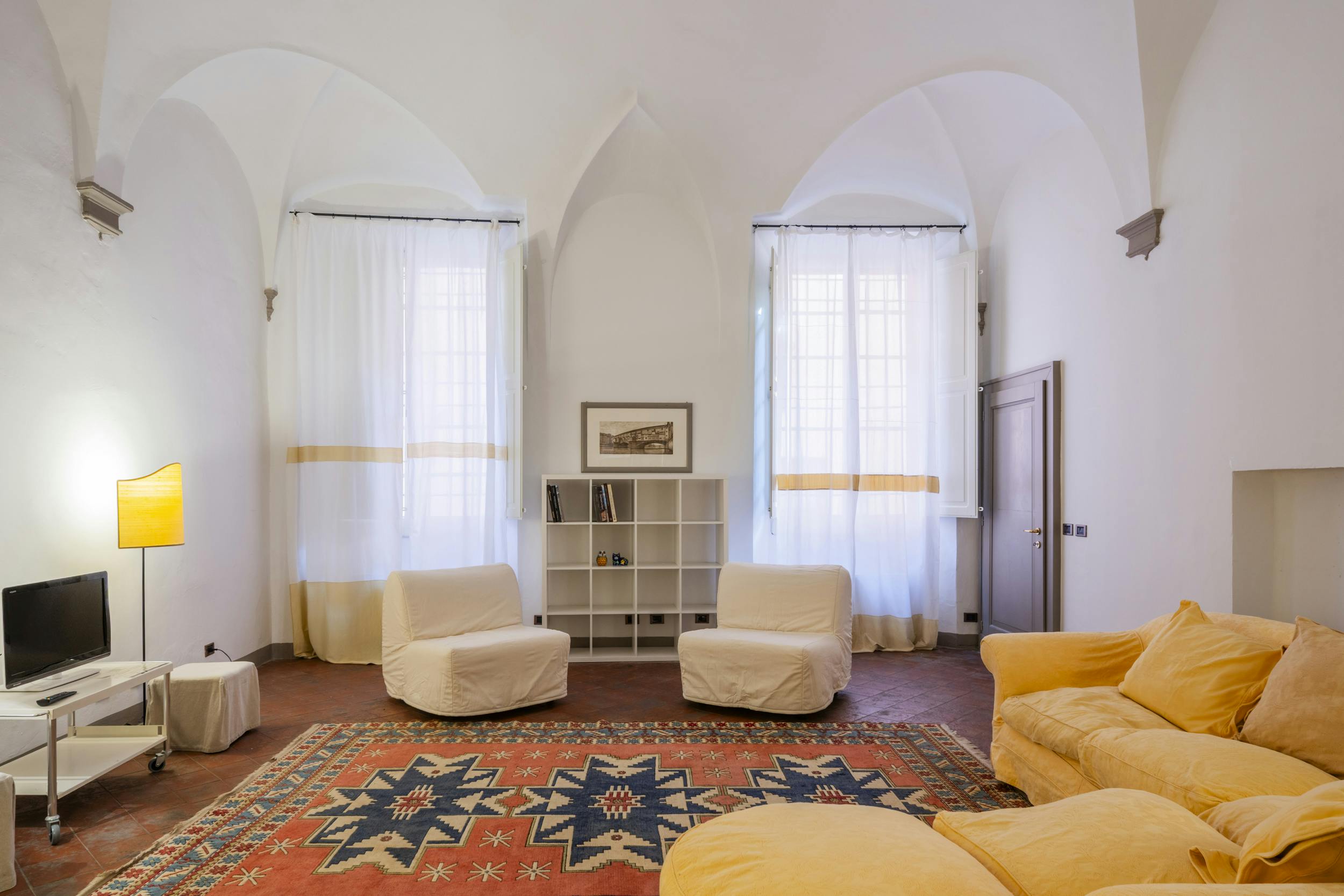 On the ground floor of the ancient and historic Palazzo Bocchi, crossing the inner courtyard surrounded by the typical portico, you will access the apartment.